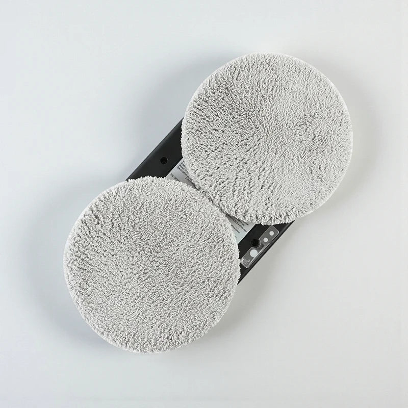 Le système à double disque rotatif limite les traces. Le résultat dépend de la propreté des chiffons et d’une humidification correcte.